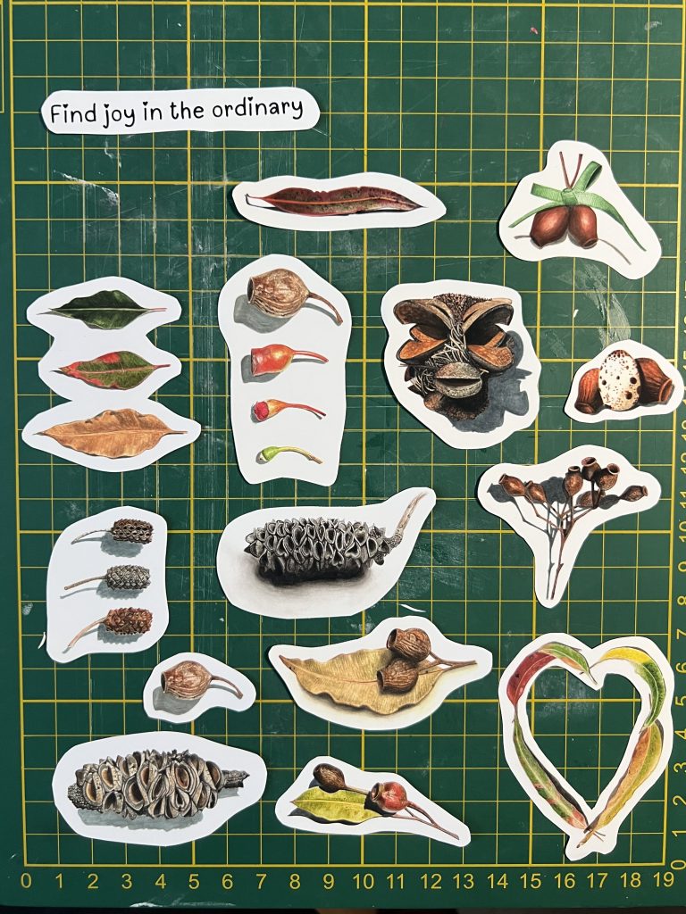 These days, I paint what the kids bring me – fallen leaves, broken seed pods, half crushed gumnuts – all the little treasures that usually go unnoticed. I try to capture the way children see the world: full of wonder, curiosity and magic hiding in the everyday.